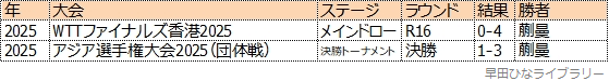 WTT/ITTFの公式サイトにある対戦記録からの引用です。