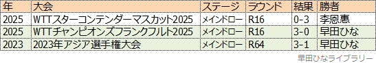 WTT/ITTFの公式サイトにある対戦記録からの引用です。