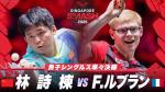 横方向から飛んできたボールのエッジ判定に不服な林兆恒選手がチャレンジを要求しましたが、失敗しました。見事に台の角に当たっていました。TTR映像があると誰もが納得できる好例となりました。