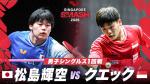松島輝空選手のサーブに対し張本智和選手がチャレンジを要求し、成功しました。