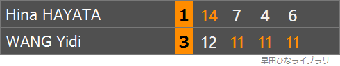 早田ひな選手はシード外であったため、R32で王芸迪選手と当たるドローでした。まあシード内であっても準々決勝で当たるし、準々決勝を突破しないと実質的にWRを上げられないため、とにかく勝つしかありません。